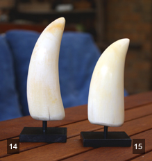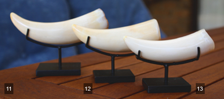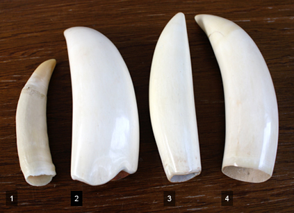 The Albany & Ivory collection of Sperm Whale teeth come in a range of shapes and sizes, each with varying degrees of detail and texture.